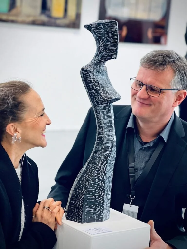 Unter all den ausgestellten Werken von Bildhauer Nando Kallweit blitzen auch auch 2 kalligraphierte Bronzeskulpturen in der dm Arena bei Capital Culture Gallery.