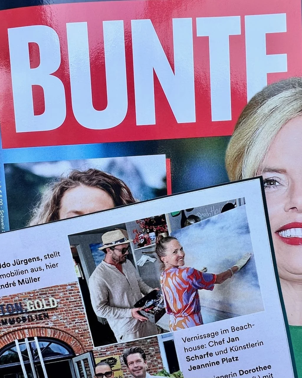 Bunte, 21. August 2025 21. Aug. Verfasst von Jeannine Platz “Vernissage im Beach House: Chef Jan Scharfe und Künstlerin Jeannnine Platz”pic: Wolfgang Barth presse1 Jeannine Platz