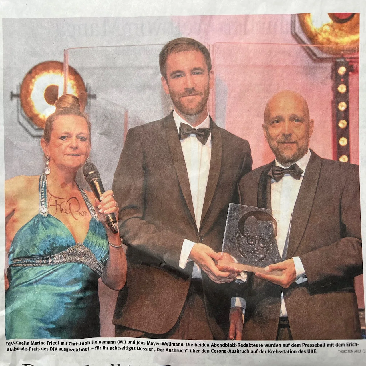 Die Hamburger Medienberichte über das außergwöhnliche Outfit von Marian Friedt - Vorsitzende des Deutschen Journalistenverbandes Nord auf dem Deutschen Presseball.