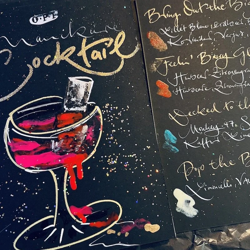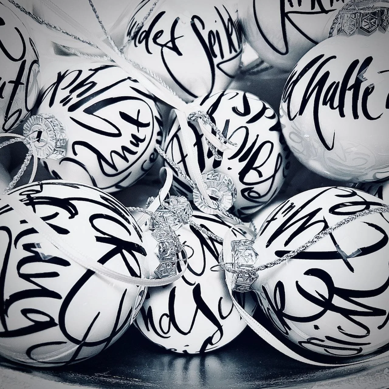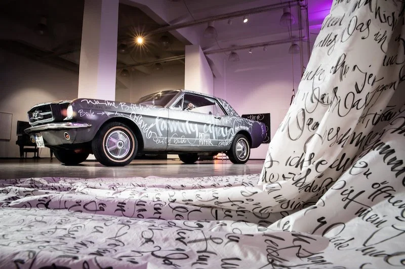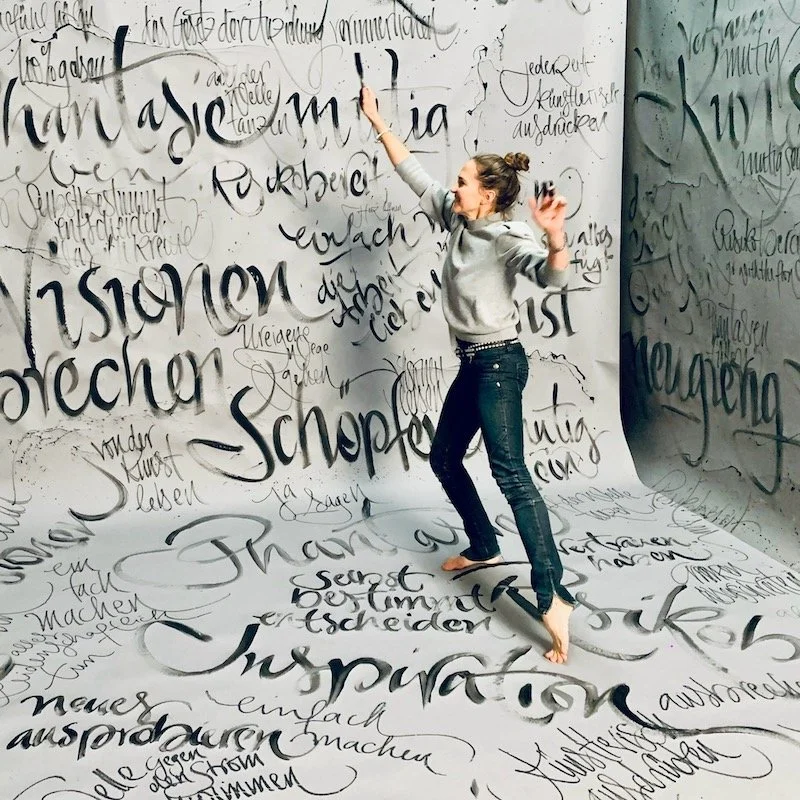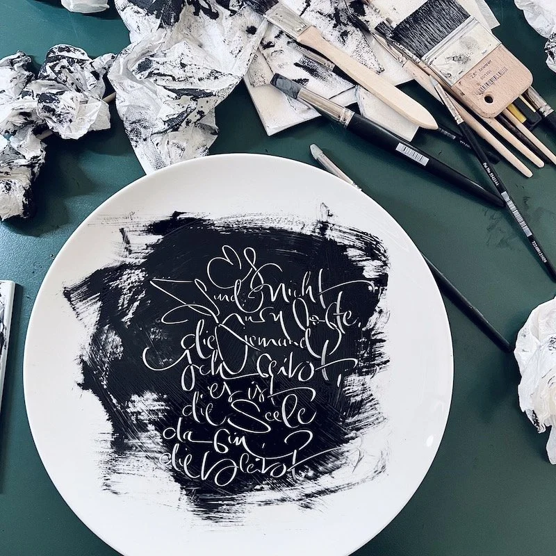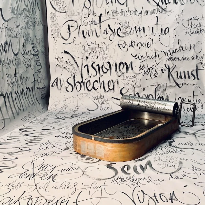 Hier entstehen Einladungen, Menü- und Tischkarten, Kondolenzbücher, Bankettmappen, Kalligraphie auf Leinwand, Leder, Büttenpapier, Autos, Konzertflügeln, nackte Haut und vieles mehr.