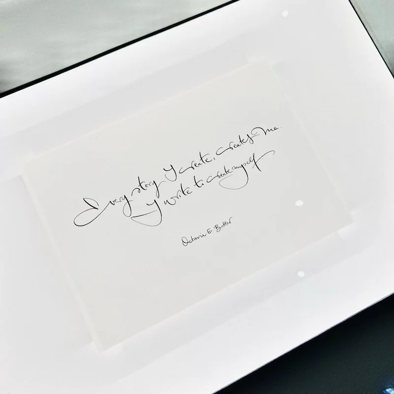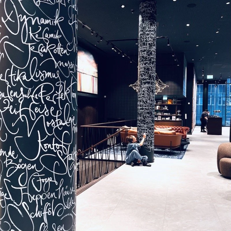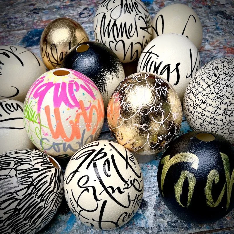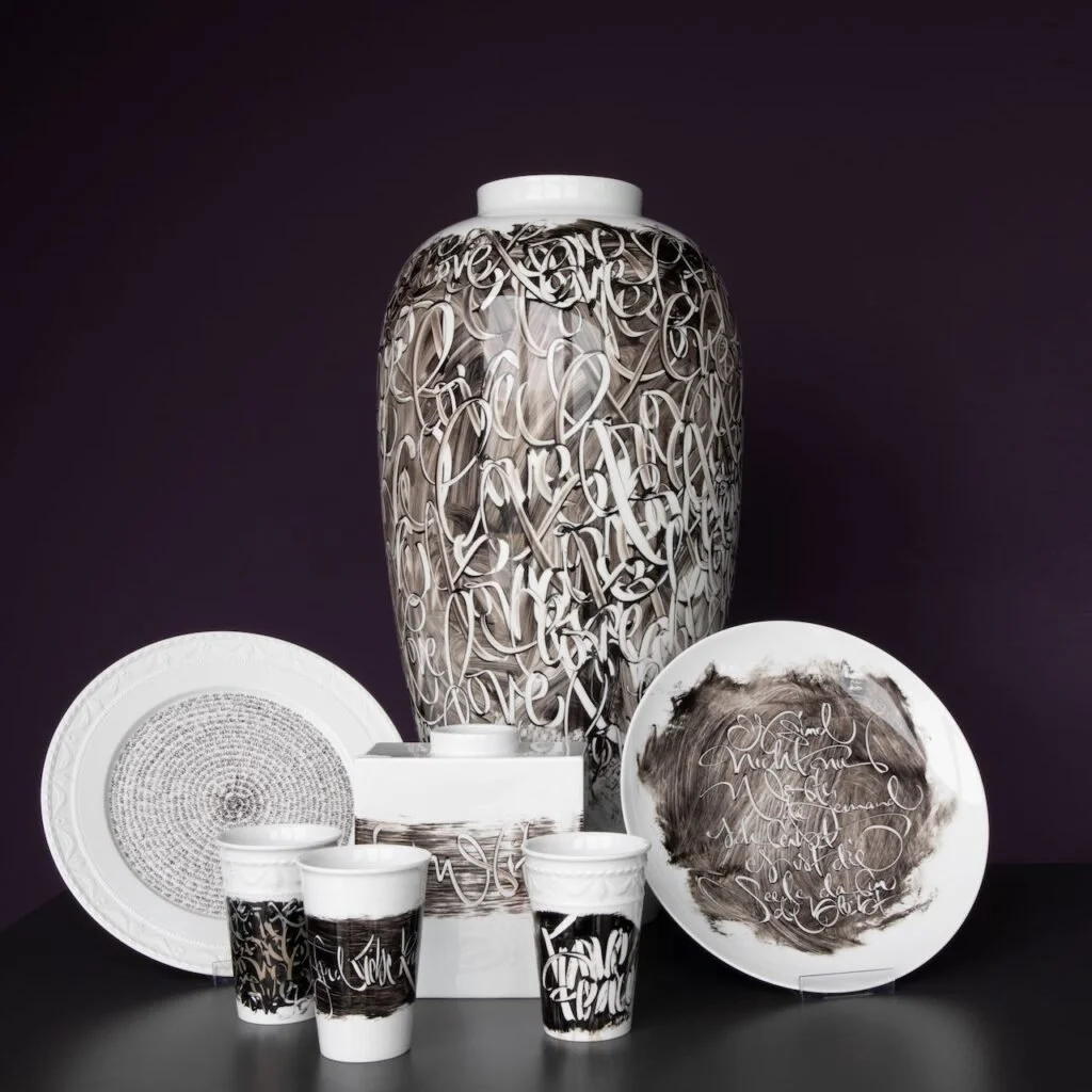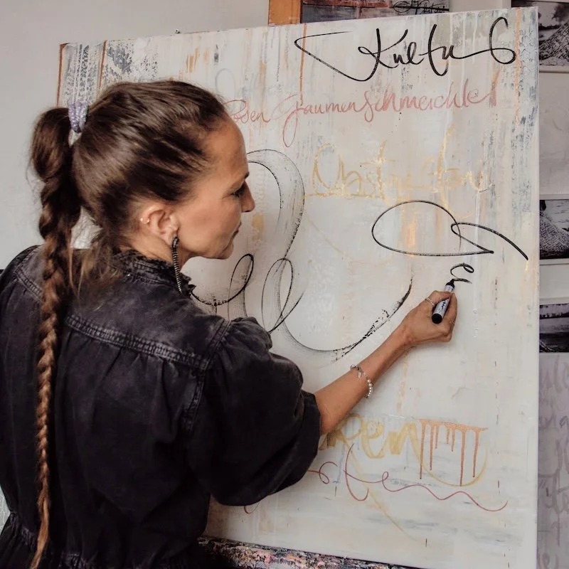 Hier entstehen Einladungen, Menü- und Tischkarten, Kondolenzbücher, Bankettmappen, Kalligraphie auf Leinwand, Leder, Büttenpapier, Autos, Konzertflügeln, nackte Haut und vieles mehr.
