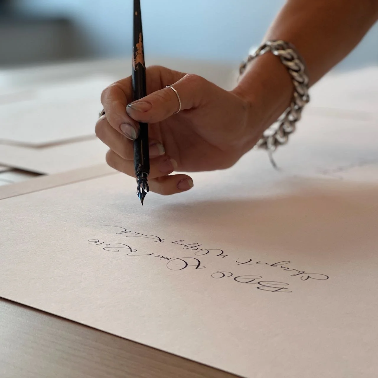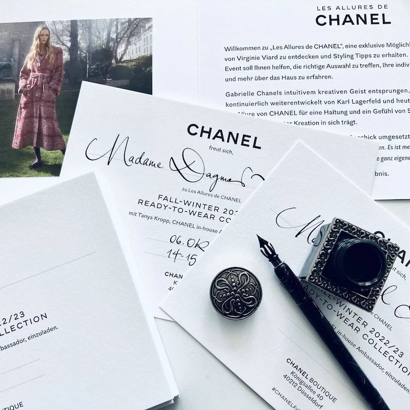Wenn namhafte Unternehmen zu hochkarätigen Empfängen einladen und dafür die Papeterie mit Feder und Tinte schreiben lassen, dann befindet man sich im Atelier von Jeannine Platz.
